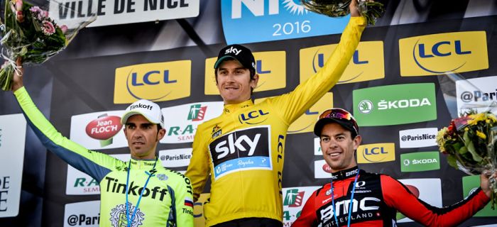 Ce dimanche Geraint Thomas (Sky) a remporté le Paris-Nice avec une avance finale de seulement quatre secondes sur Alberto Contador (Tinkoff), après une fin de course ultra disputée.